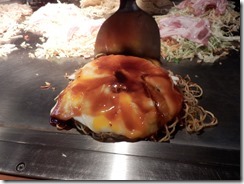 なので、通常のお好み焼きは、玉子焼きのようなざらざらした表面になるのですが、こひなたさんのお好み焼きは目玉焼きのツヤツヤ色の表面になっています。また、焼き方のせいか通常のお好み焼きよりもジューシーさが高くて、それと白身の食感と黄身とお好みソースのバランスが絶妙に美味しいんです。