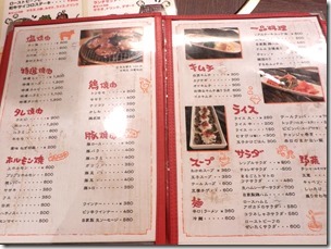 夜は焼肉屋さん。ざっくりこんな価格です。広島でしか食べることができないコウネも、当然のようにあります。