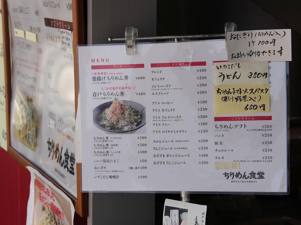 ちなみに、「ちりめん食堂」さんは広島市内の本通りにもお店があり、ちりめん丼やちりめんソフトなどの、第三音戸大橋の売店と同じメニューを食べることができます。