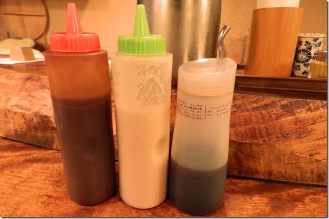 これを最初に出されたソースに浸すか、または、おろしポン酢だれ(プラス50円)もあります。