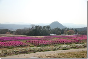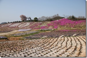 世羅町の花夢の里には、ピンクや白色・柴色などの芝桜が、5ヘクタールの丘陵地いっぱいに植えられています。